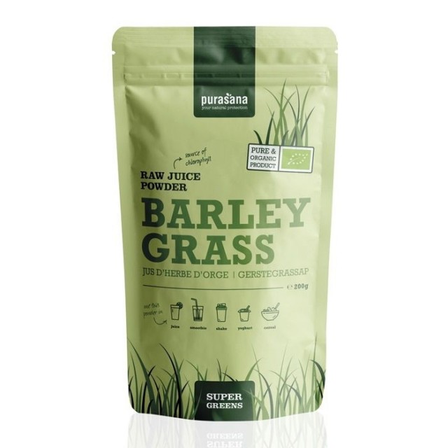 Purasanas pulver av kaldpresset byggressjuice, laget av unge byggresskudd dyrket i Utah i USA, er et rent, grønt pulver fullt av fytonæringsstoffer. Takket være den bærekraftige behandlingsprosessen, opprettholder produktet farge, lukt og smak og inneholder nødvendig klorofyll og enzymer.